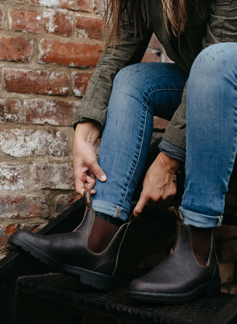 The original, iconic Blundstone #500 series boot. When Blundstone launched the iconic waterproof Chelsea boot over 50 years ago, they were worn by farmers, builders and anyone else who needed footwear that could handle a hard day’s work. Shaped to the human foot for ultimate comfort, this classic boot goes with you every step of the way–whether you’re navigating big cities to trekking parts unknown.