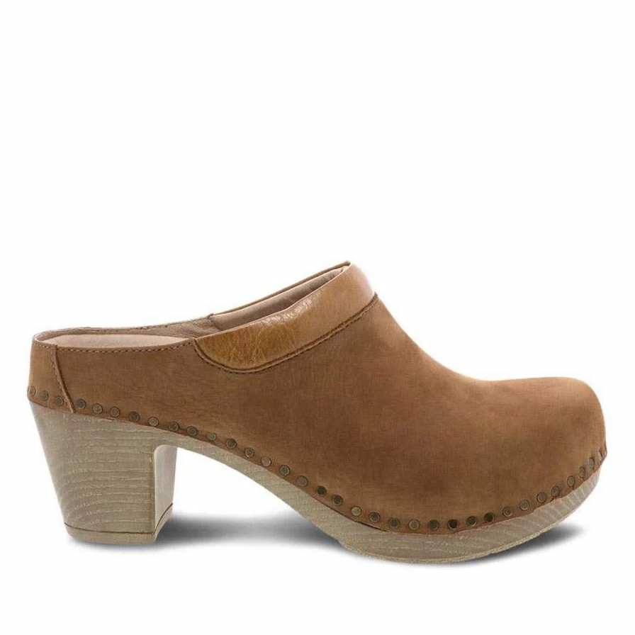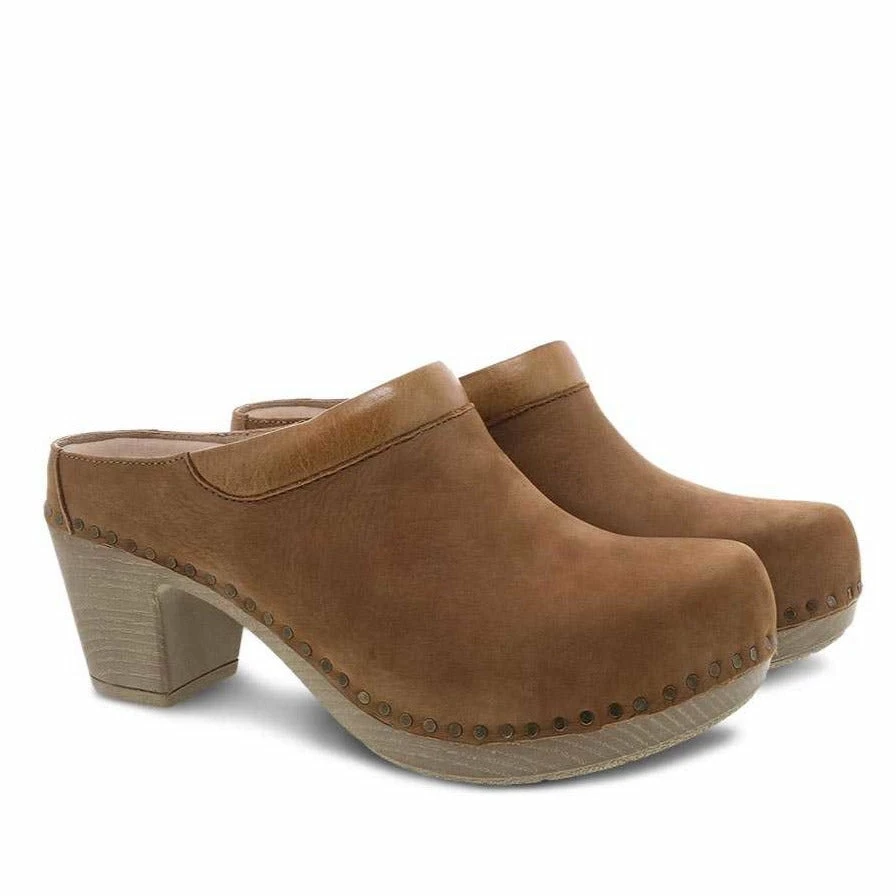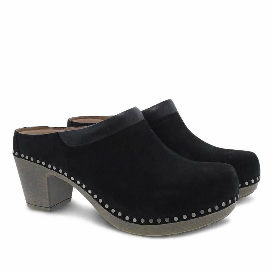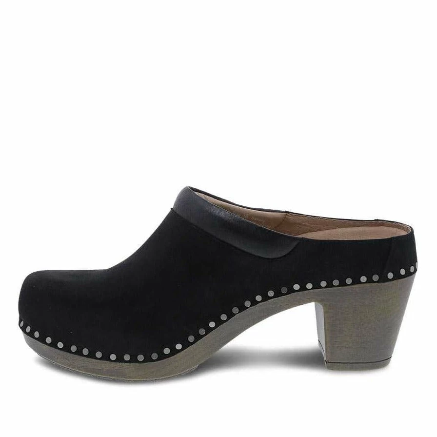 Dress up your day in the Sammy mule. This open back heeled clog features nailhead trim detail and Nubuck uppers, treated withΒ 3M ScotchgardΒ protector for stain resistance, and our signature stapled construction. A leather covered, removable energy return EVA footbed withΒ Dansko Natural arch technologyΒ offers added comfort and support, while the lightweightΒ PU outsoleΒ provides long-lasting wear.
