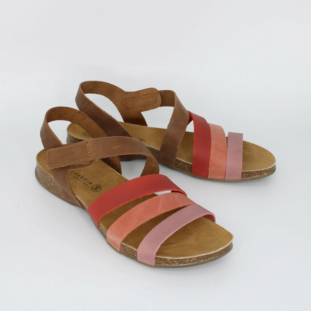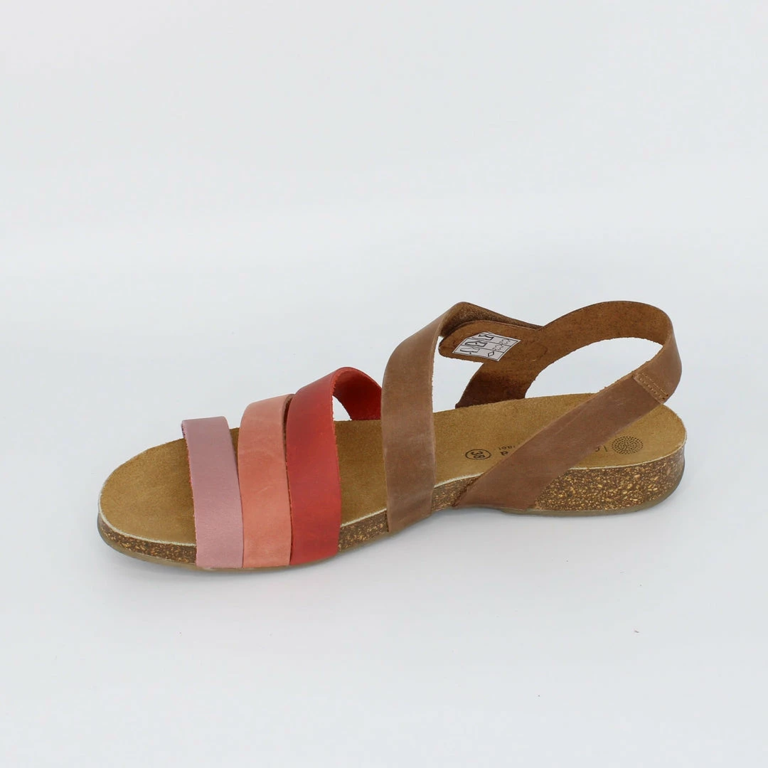 This leather sandal from Eric Michael will add some fun color and comfort to your summer wardrobe! Style casually with a pair of light jeans, or coordinate with your favorite skirts and dresses for a playful look!Β