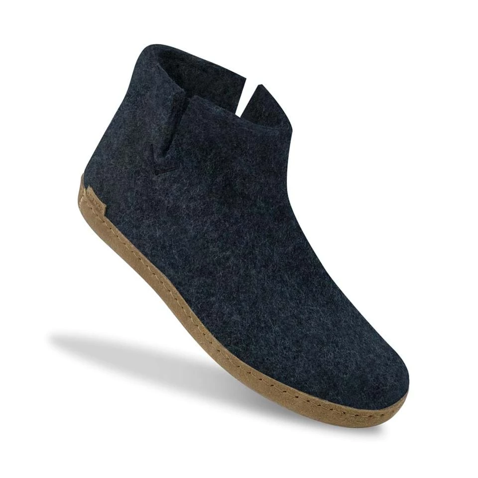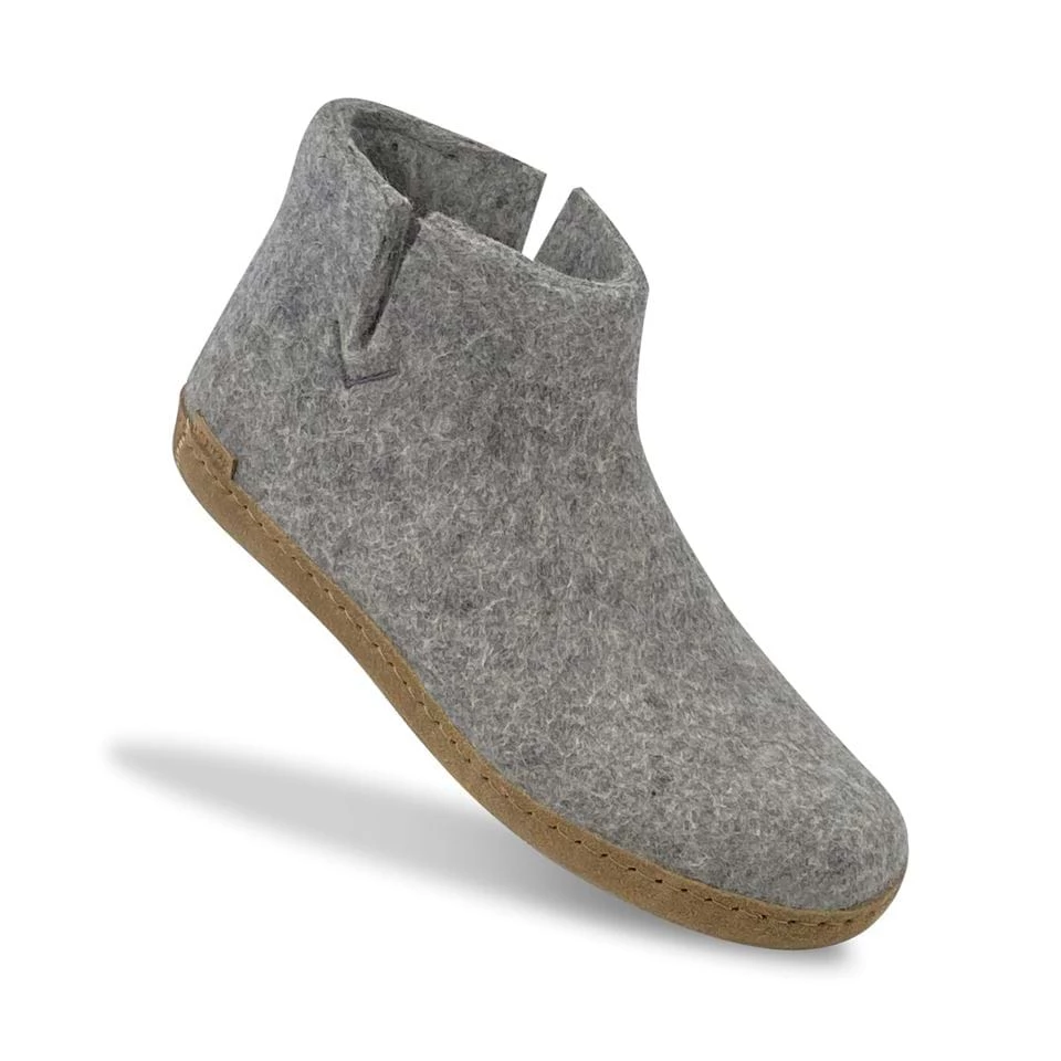 Felt ankle boot of 100% pure natural woolΒ in the classic color grey with a sole of soft vegetable tanned calfskin.