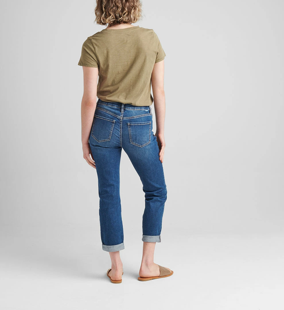 Just when you thought our best-selling Carter Girlfriend fit couldn’t get any better… we added our ultra-flattering Best Kept Secret technology. It still has the same comfortable mid rise and perfectly relaxed silhouette, but now features interior elastic at the waist that acts as an invisible belt, ensuring it not only sits right in place on the hip, but stays there too for a perfect fit all day long. Plus, it features front pockets that smooth and tuck, and perfectly-placed back pockets for a proportional look. Crafted in our power stretch denim and finished with a medium-dark indigo wash.