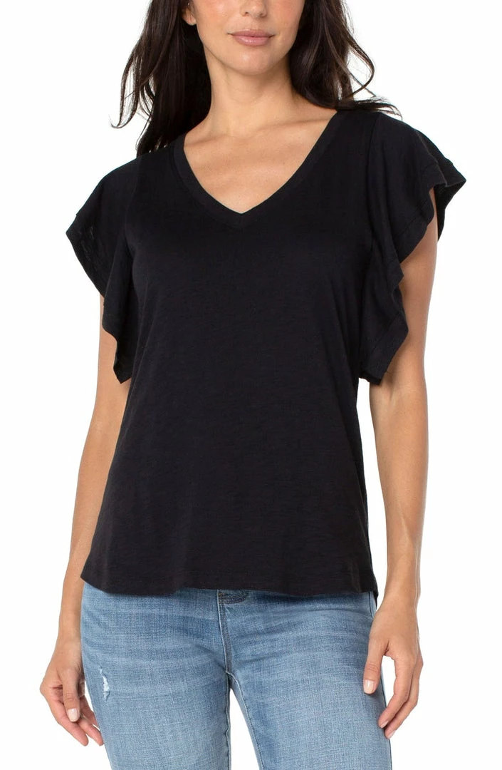 Dress it up or down, this top makes aΒ statement with flutterΒ sleeves.Β A great way to add a little flare to a classic tee!Β