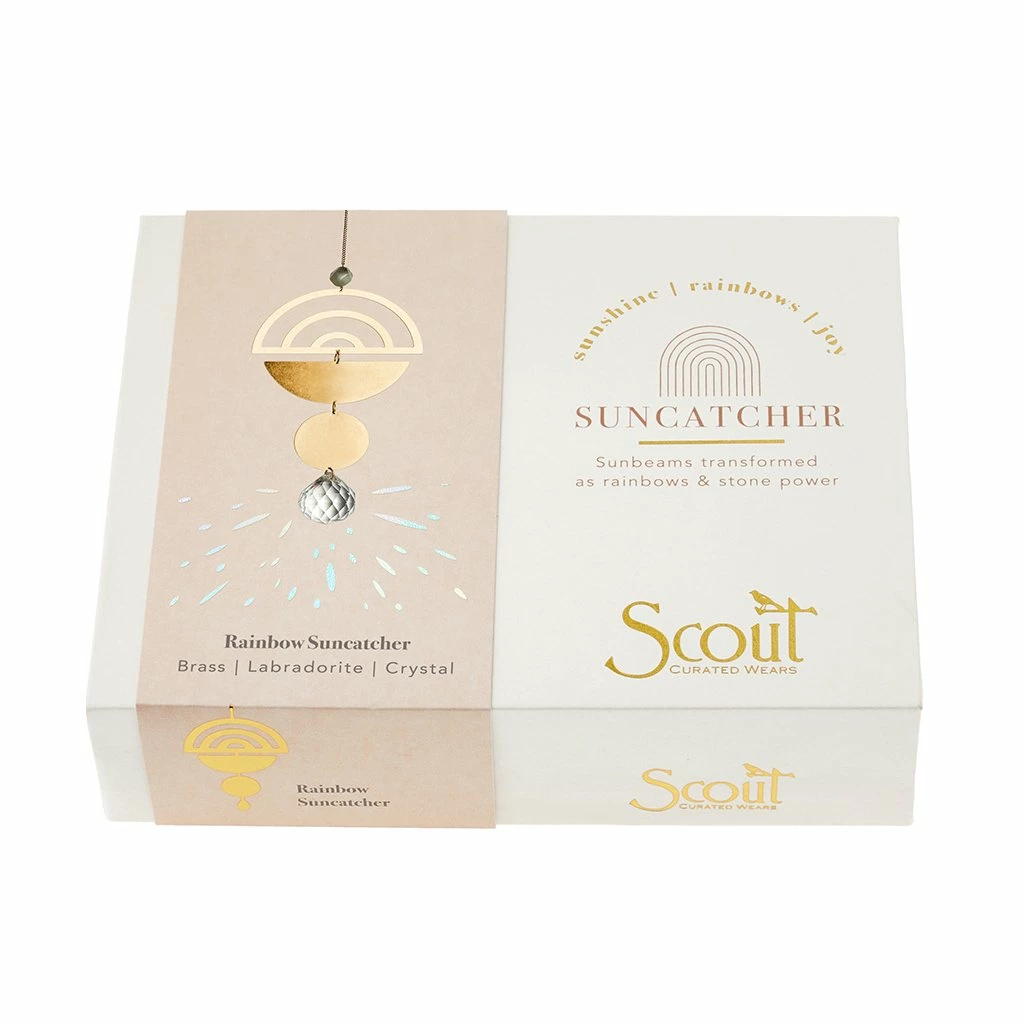Captured sunlight transforms into beautiful rainbows that spread joy. Crafted from brass, semi precious gemstones and crystal.